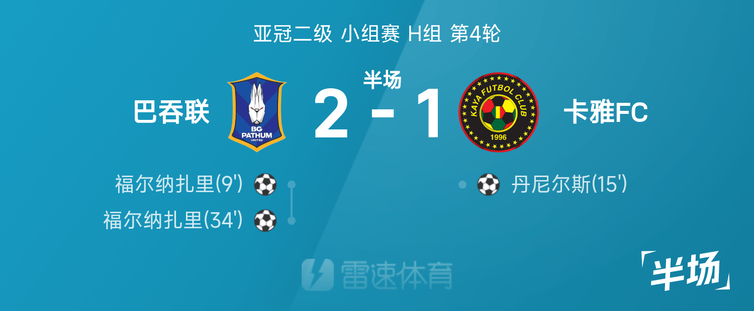 亚冠二级半场:福尔纳扎里双响,巴吞联暂2-1卡雅FC
