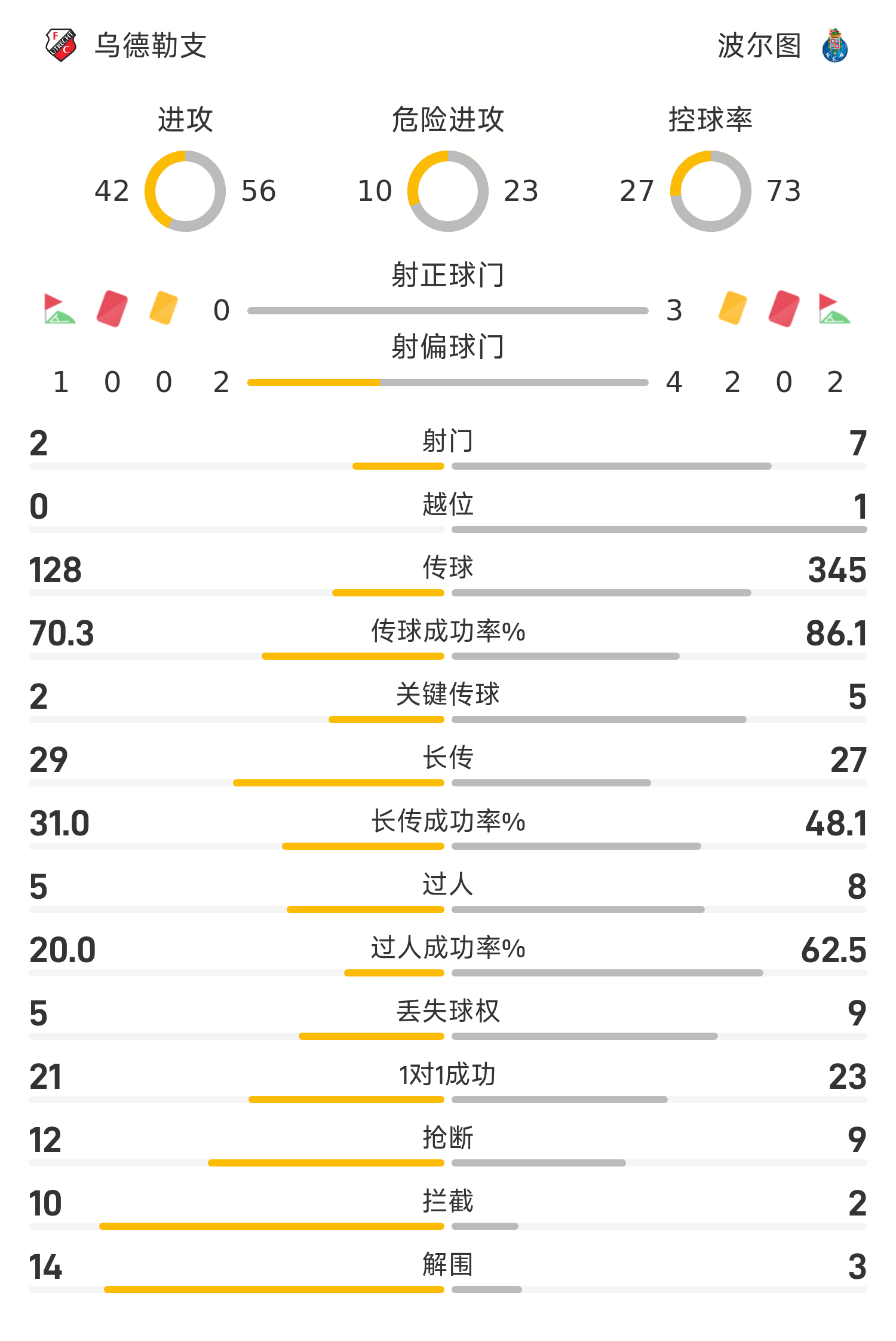 欧联半场:场上僵局暂未打破,乌德勒支0-0波尔图